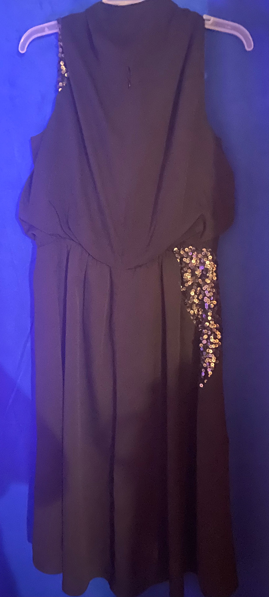 Black Layered Sequin Short Sleeve Dress Back Zip (Size 12)