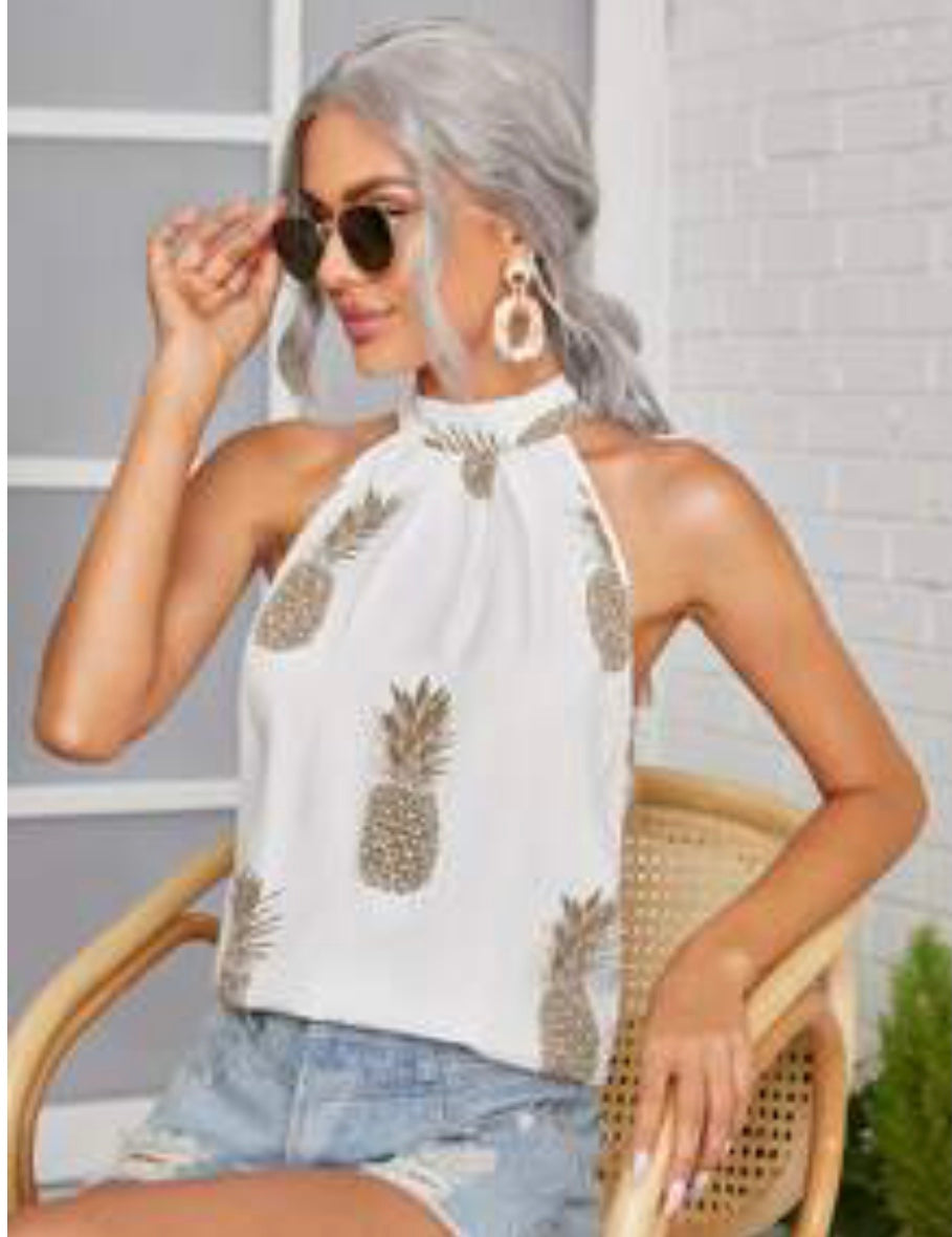 Pineapple Tie Back Summer Top ( White)