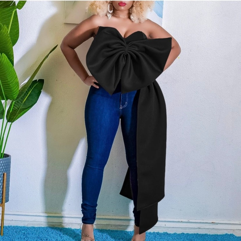 Bow Tie Irregular Women Top With Size Zipper-Polyester Fabric
