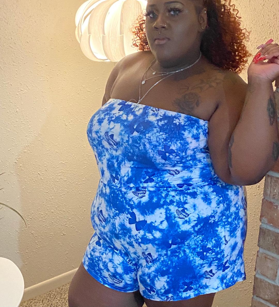 Plus Butterfly & Tie Dye Tube Romper (Blue-2XL)