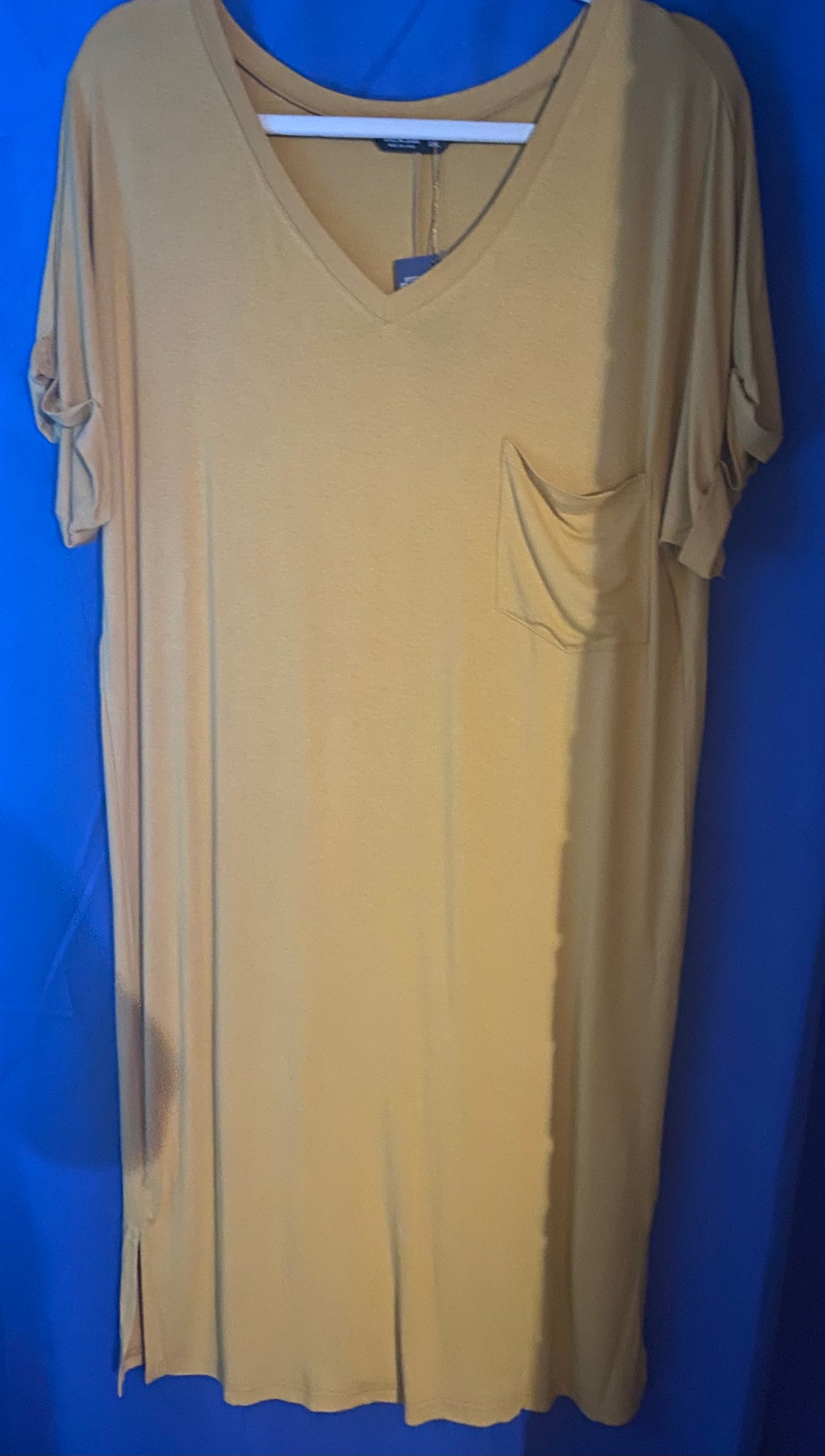 Plus Pocket Front Split Hem Yellow T Shirt Dress-(Color Yellow)-(Size-0XL)
