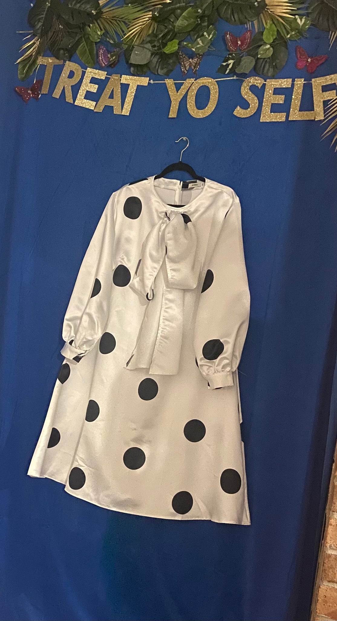 Dot Printed Bow Tie Ruffle Dress