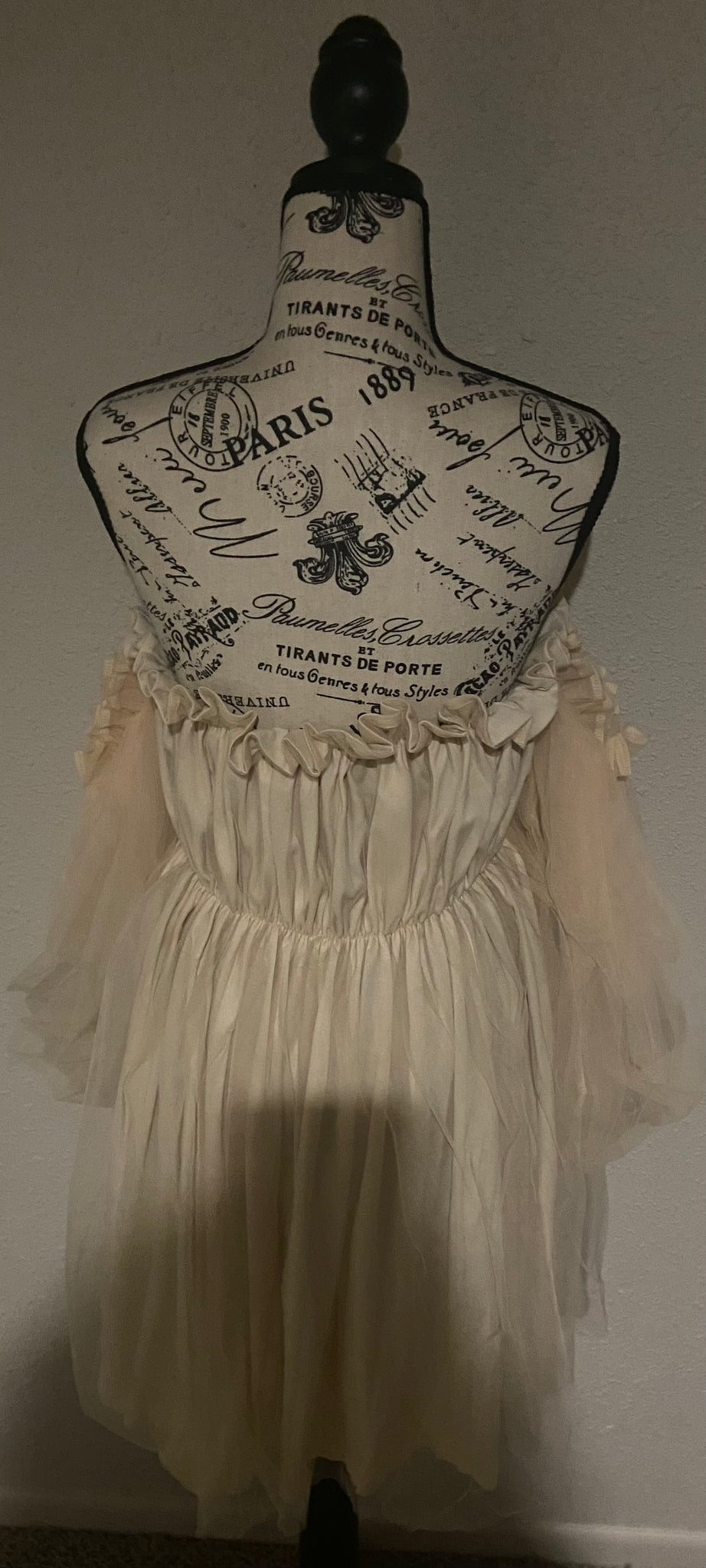 Off Shoulder Frill Trim Sheer Mesh Swing Dress