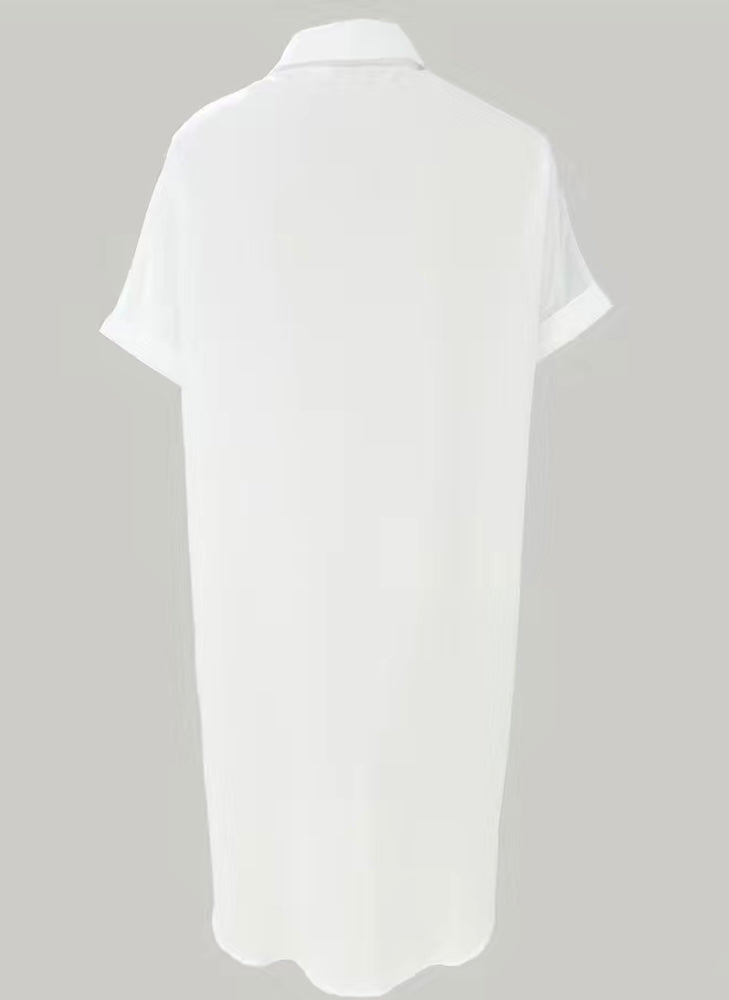 Figure Print Button Front With Rolled Short Sleeve Lapel Shirt Dress