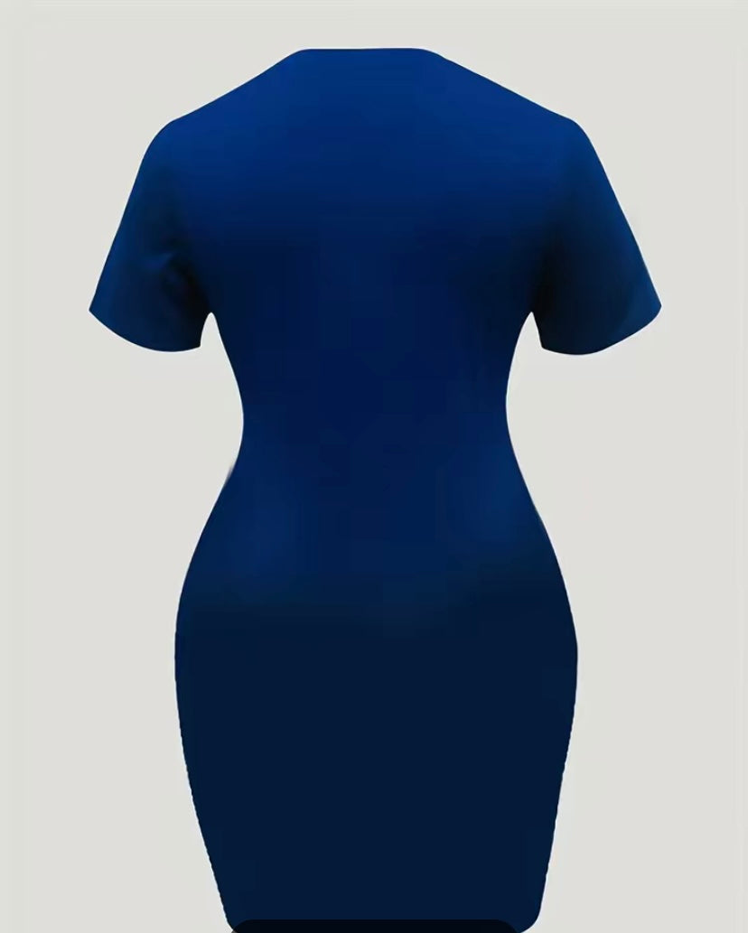 Women's Face Print Crew Neck High Stretch Short Sleeve Dress