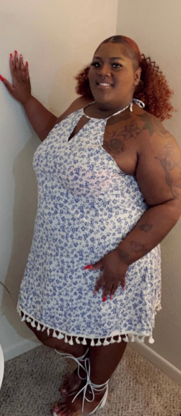 Plus Ditsy Floral Fringe Hem Halter Dress-4XL
