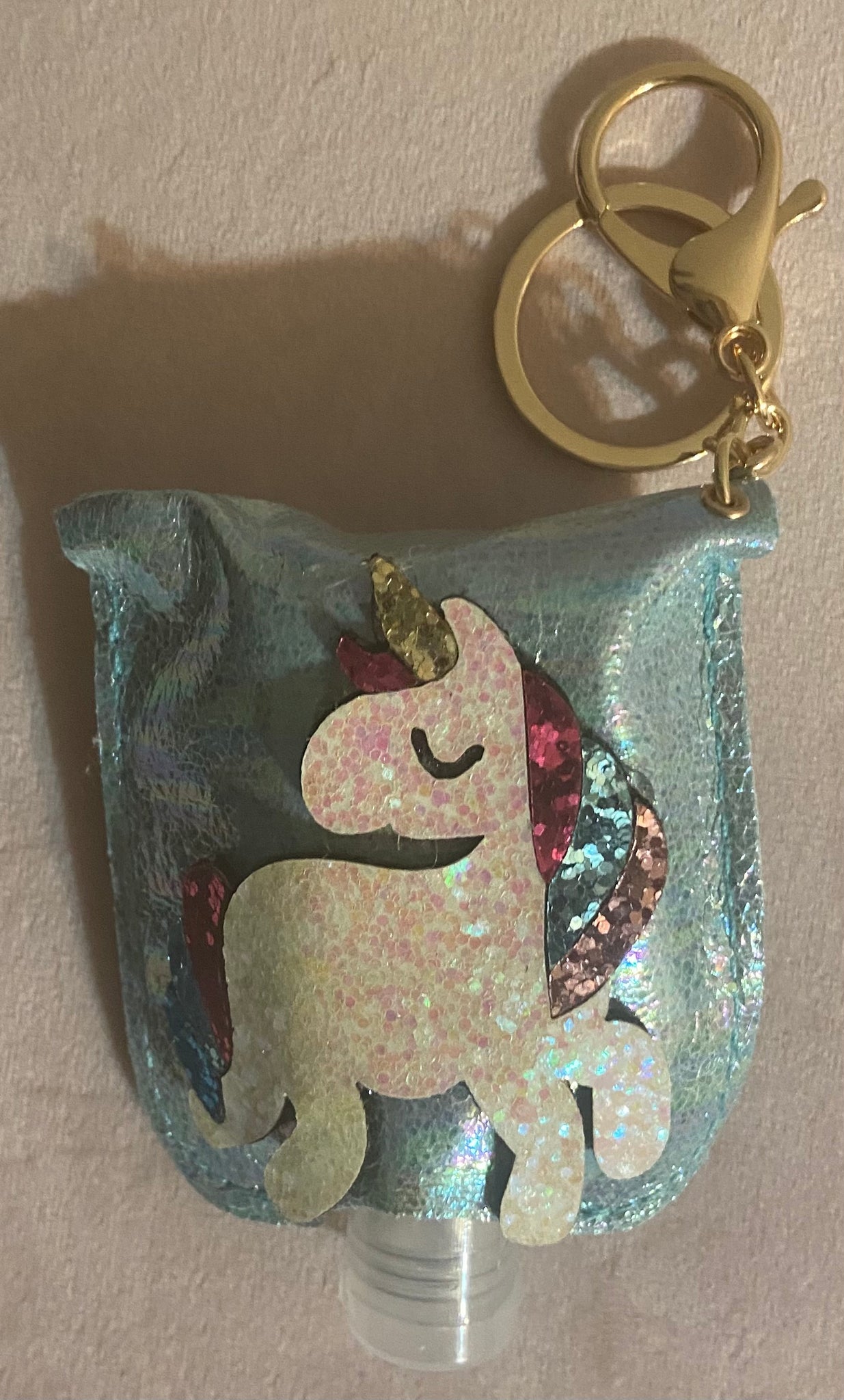 Little Girls Hand Sanitizer Gold Keychain Holder-For Backpacks & Purses-Premium Leather