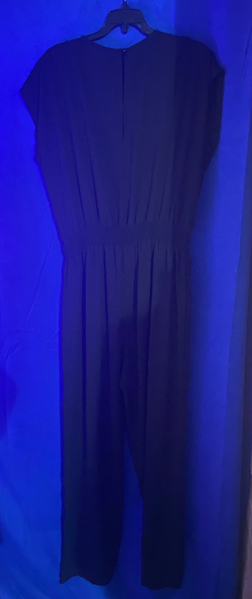 Women's Black Sheer Short Sleeve & Button Back Fashionable Jumpsuit ( Size 1X)