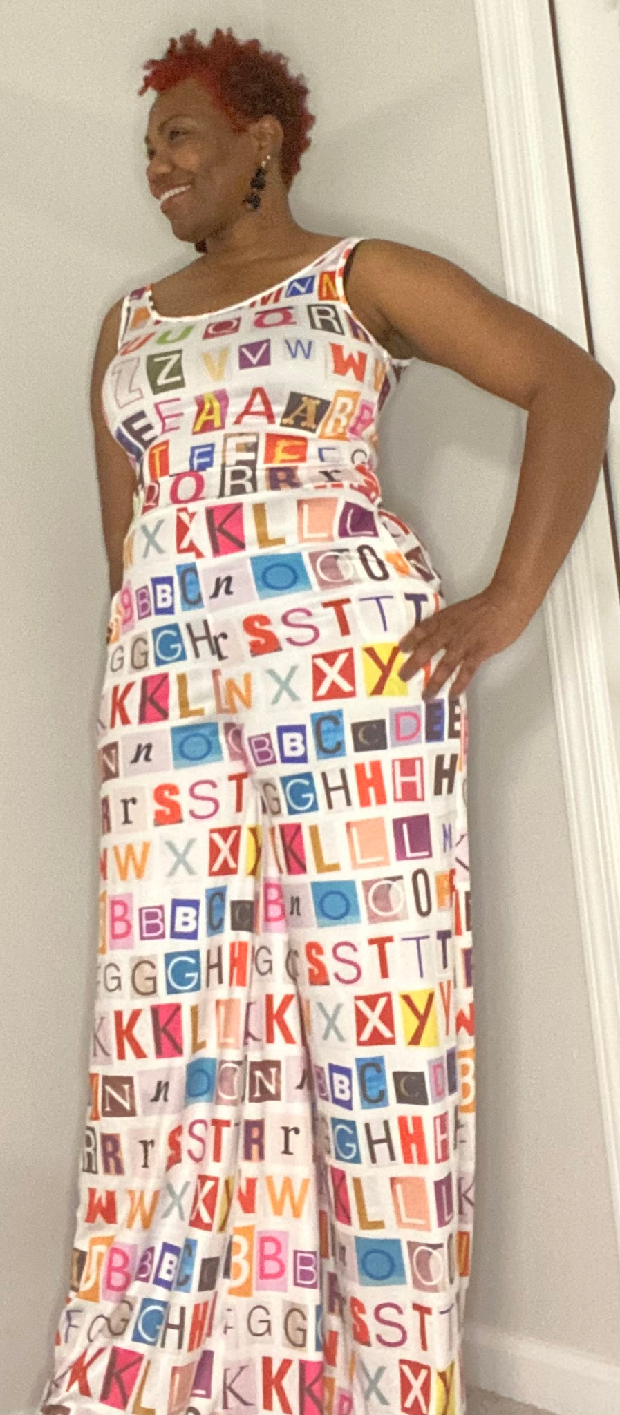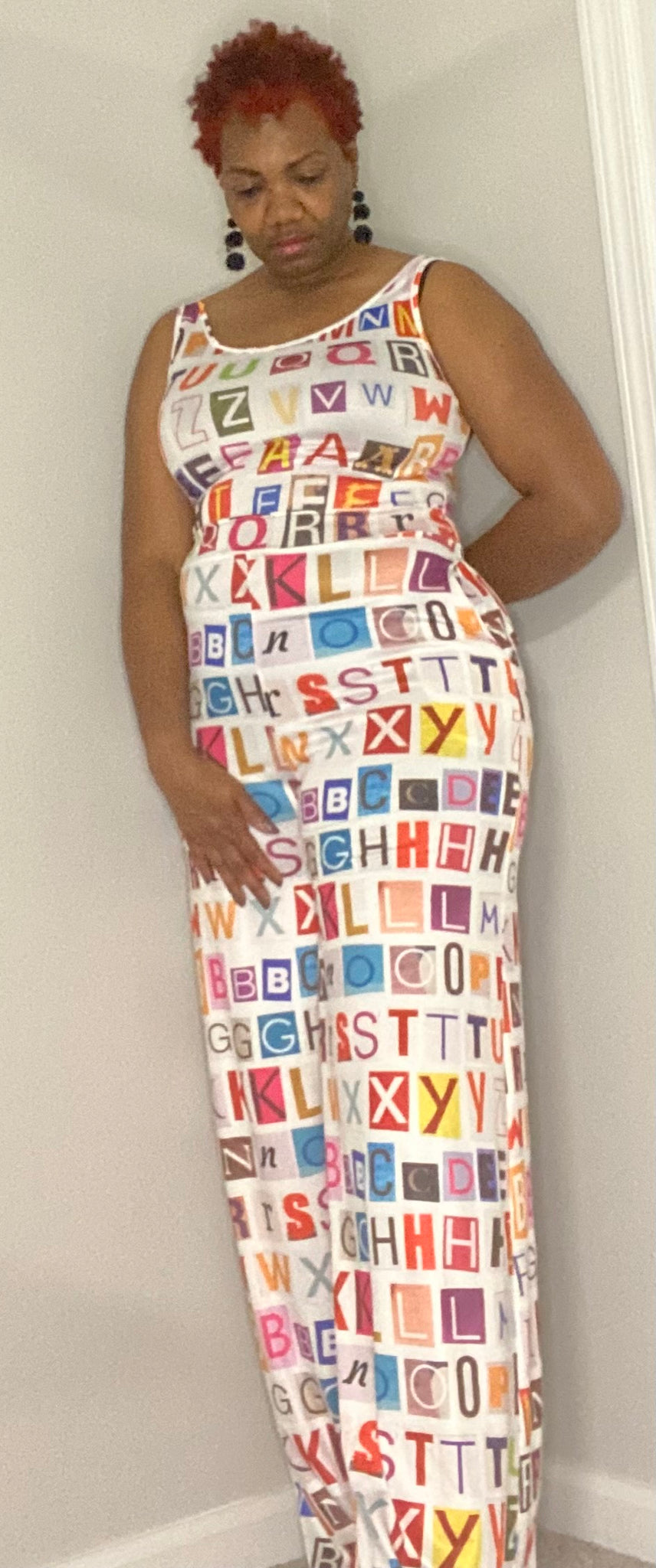 Sleeveless Letter Print Wide Leg Jumpsuit (15% Cotton & 85% Polyester) 2 Available