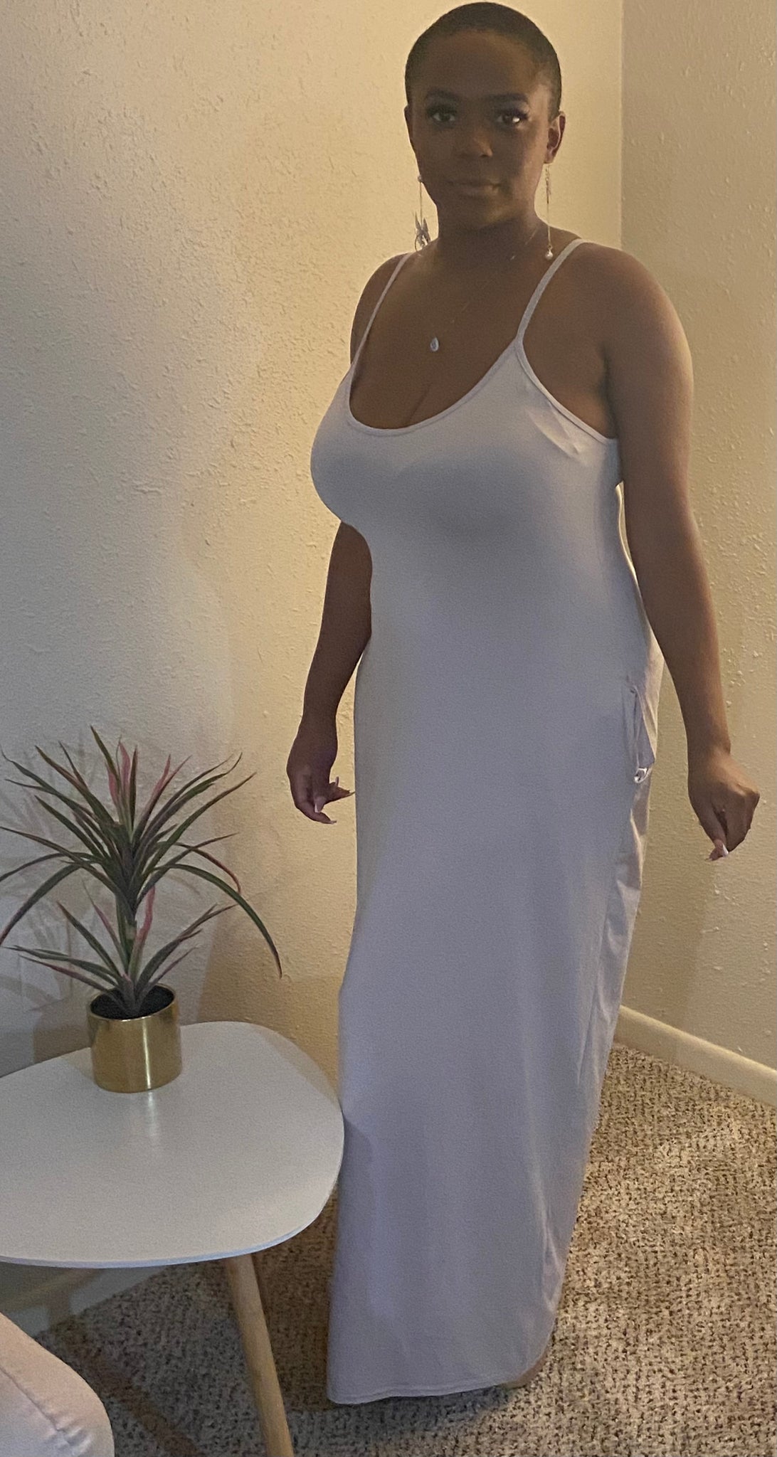 Casual V Neck Camisole Maxi Dress-Color Gray-Size-Large