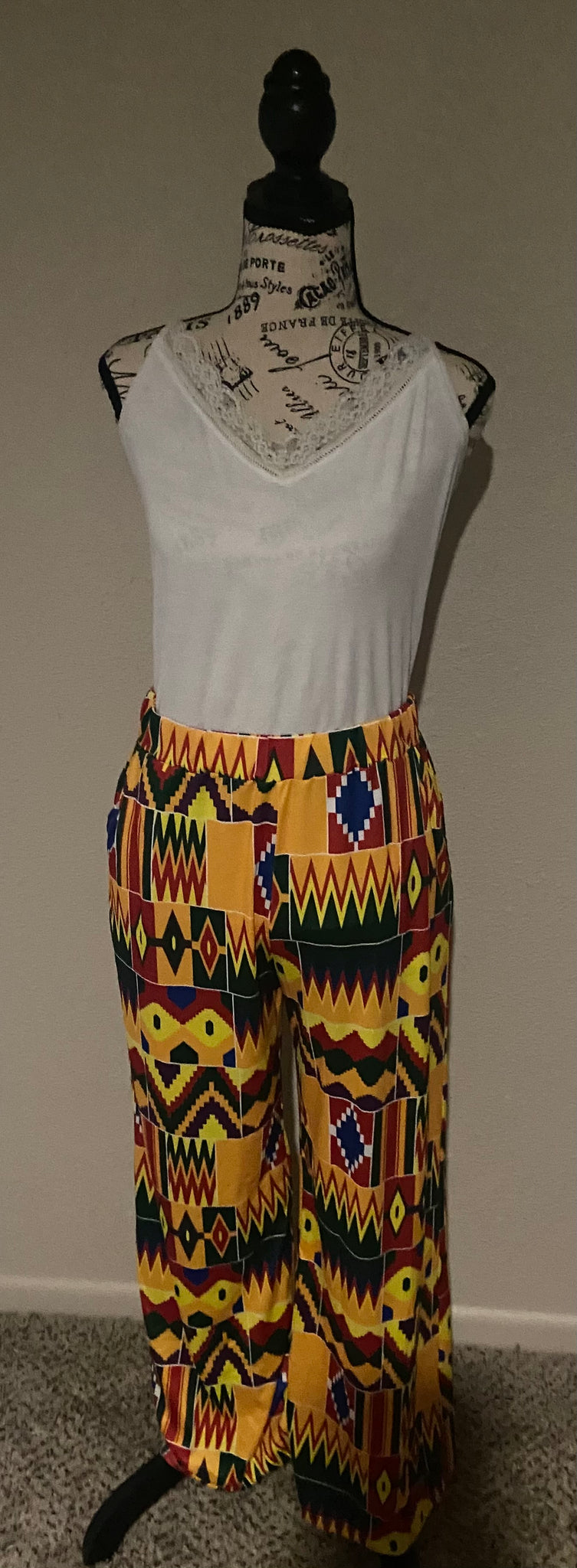 Bohemian Floral Print Hight Waist Loose Long Pants (Size 2XL)