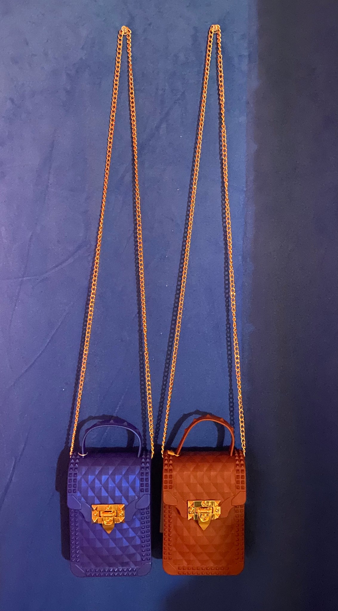 Women's 100% PVC ( Polyvinyl) Adorable Crossbody Purse With Gold Chain-2 Colors Available
