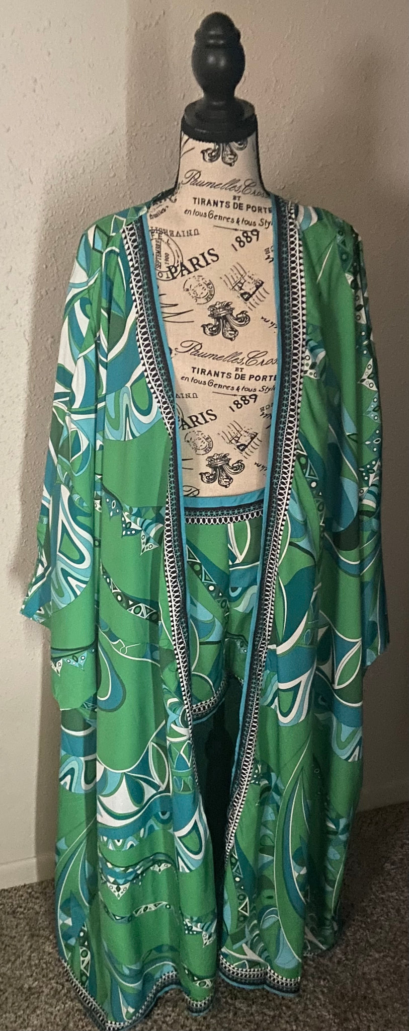 Abstract Print Batwing Sleeve Cardigan & Shorts Set