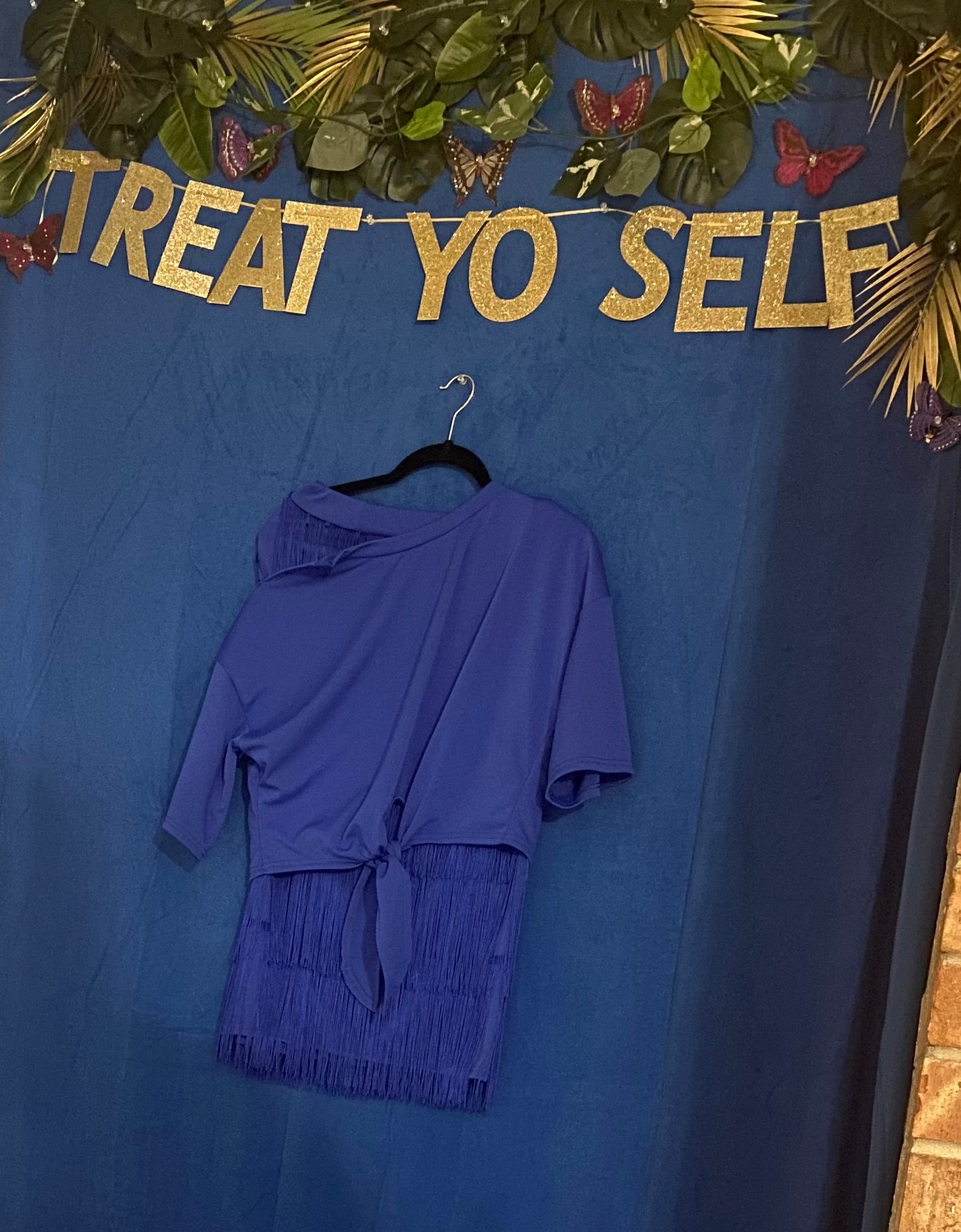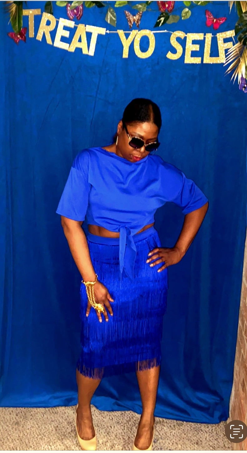 Two-Piece Tassel Skirt Set- Off the Shoulder- Polyester/ Terylene (2 In Stock)