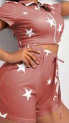 Plus Star Print Top & Shorts- ( Pink- Size 0XL)