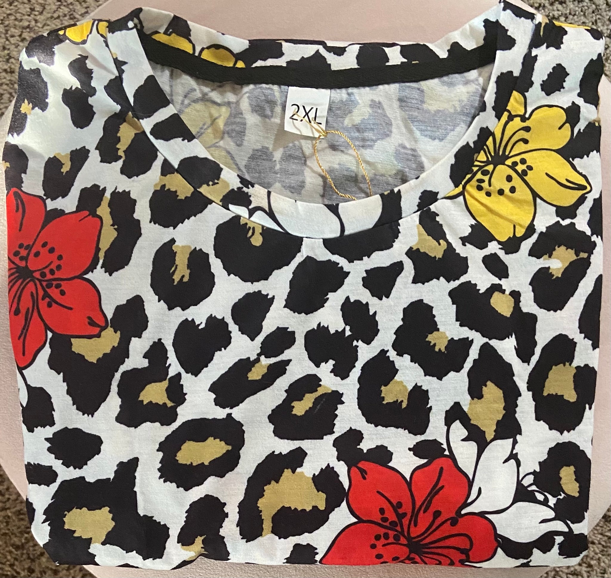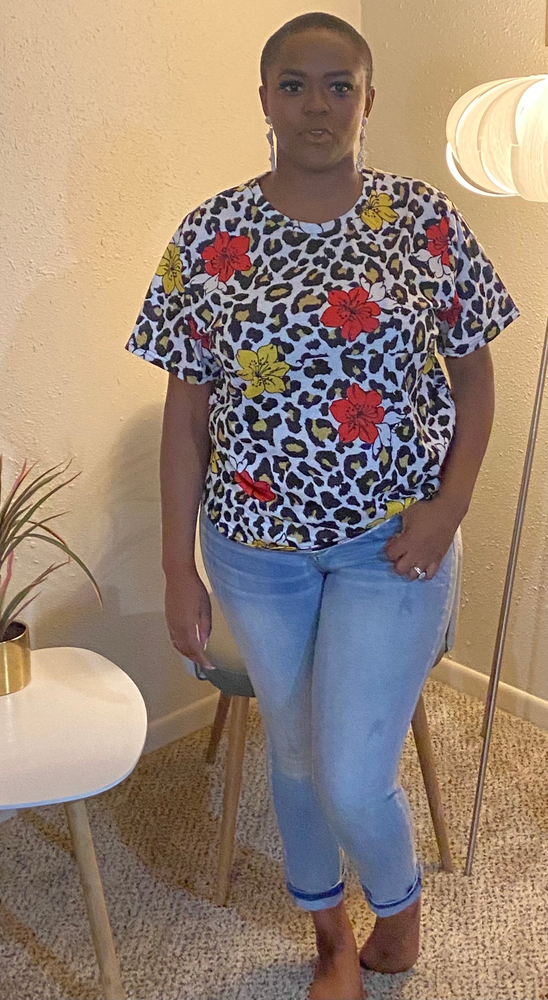Women's Plus Size Graphic Leopard Floral Print- Round Neck & Short Sleeve