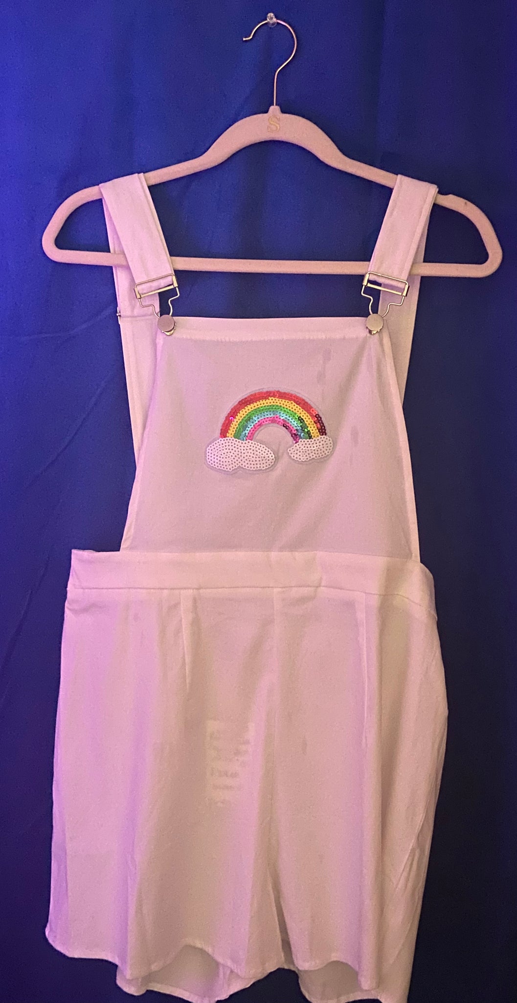 Plus Sequin Patched Detail Overall Romper-( White- Size-0XL)